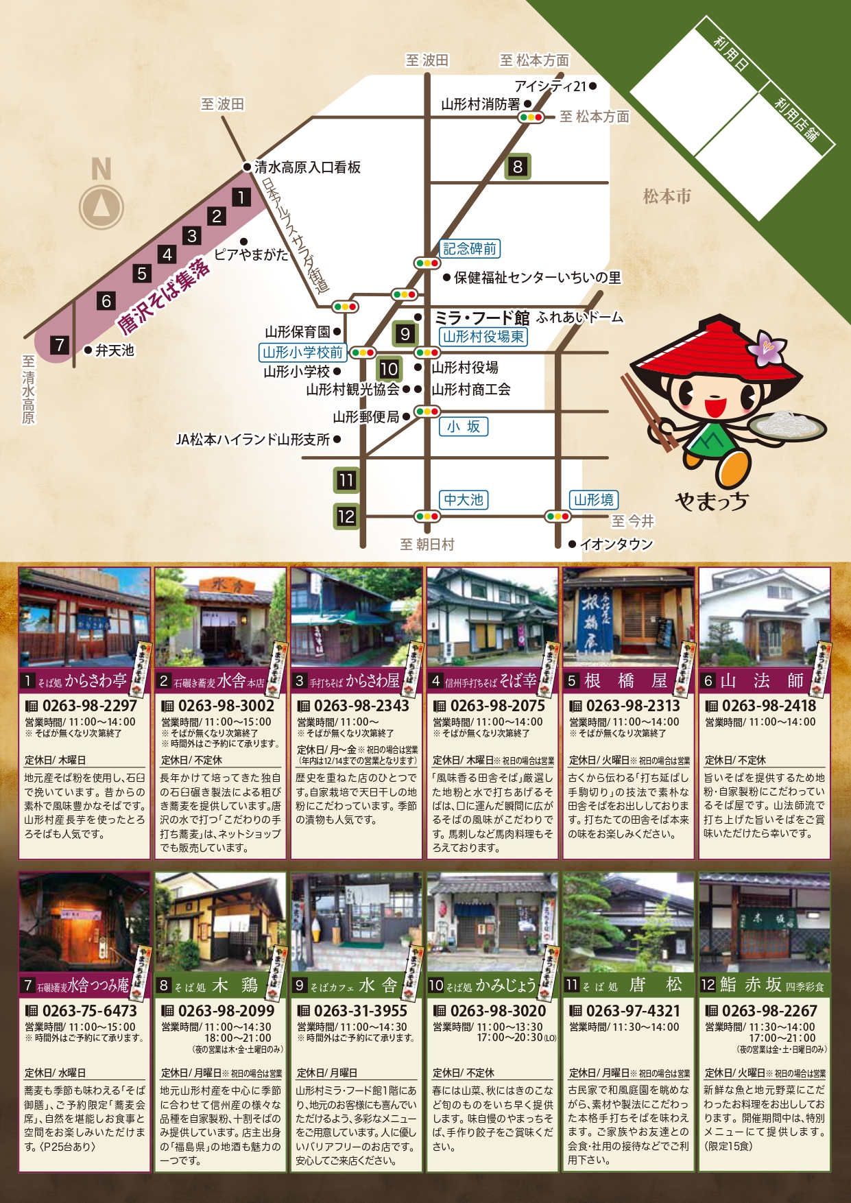 村特産の長芋を細く長く切り、蕎麦と絡めた「やまっちそば」をはじめ、フレッシュな中に味わいの深さが特徴の、この時期ならではのお蕎麦が味わえます。