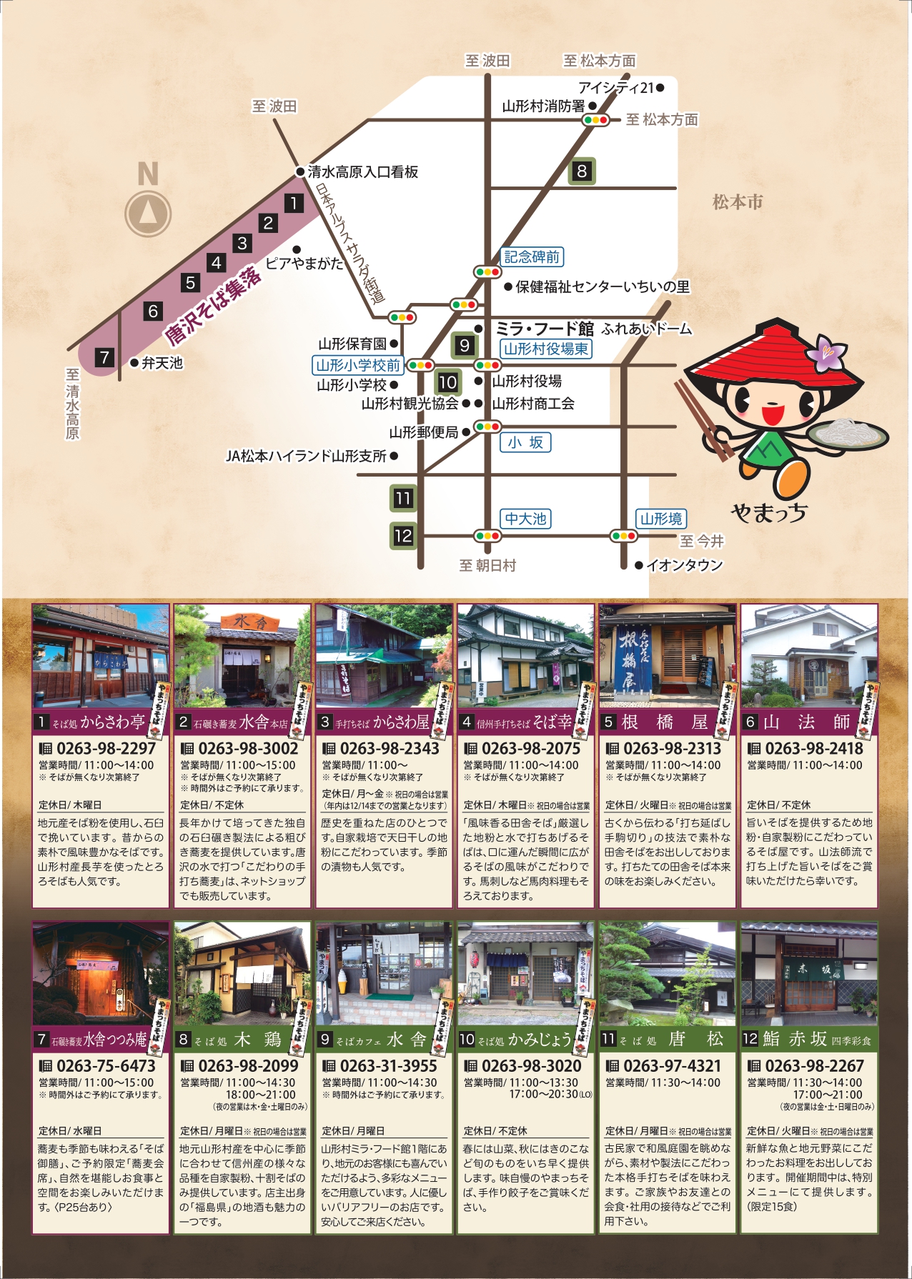 村特産の長芋を細く長く切り、蕎麦と絡めた「やまっちそば」をはじめ、フレッシュな中に味わいの深さが特徴の、この時期ならではのお蕎麦が味わえます。